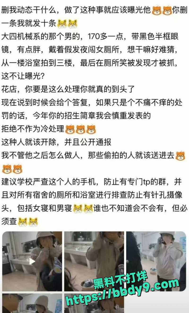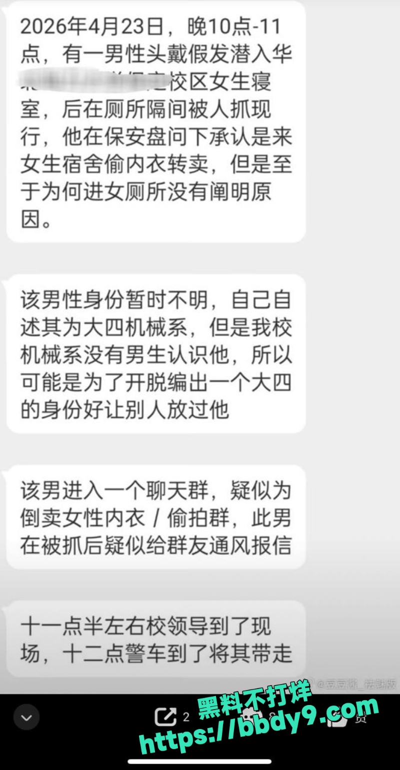 4月23日晚11点多一名男生竟大胆戴上长假发,伪装成女生模样,趁刷脸门禁尚未启动,大摇大摆混进女生宿舍楼,直奔3楼厕所隔间偷拍女生上厕所和洗澡的私密画面。结果这家伙在里面忍不住笑出声,当场被女生发现并揪出来!视频中,他戴着假发捂脸试图逃跑,却被一群愤怒女生堵住,连连道歉嘴硬说走错宿舍了,只是拿点东西。后来在保安面前才彻底老实交代:他本来计划等女生睡着后,溜进一楼浴室偷女生穿过的贴身内衣、内裤,转手卖钱赚钱!更让女生们气炸的是,他手机里除了大量偷拍的女生隐私照,疑似还有专门分享和倒卖偷拍视频、内衣的群聊。女生宿舍的厕所和浴室瞬间成了他的狩猎场,变态程度让人脊背发凉!目前当地派出所已将该男生带走调查
